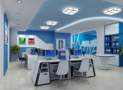 - Kính màu peko làm quầy thu ngân: Toàn bộ vách quầy lễ tân, quầy thu ngân được làm bằng kính màu, vách kính màu phía sau được làm lên để dán logo công ty, tạo nên một bộ mặt lịch sự và kiểu cách