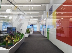 Trong các văn phòng làm việc hiện đại các sản phẩm kính được sử dụng rộng rãi, kính cường lực dùng làm vách ngăn kính văn phòng, vách kính màu cường lực chia modun làm việc, cửa kính thủy lực...